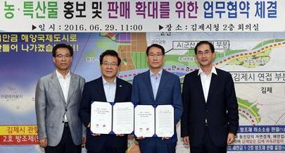 김제시와 김제우체국은 29일 관내 지역 농특산물 홍보 및 판매 활성화를 위한 업무협약을 체결했다.