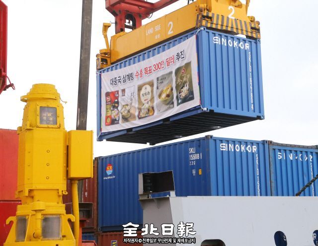 농림축산식품부는 29일, 군산항 컨테이너터미널에서 식품의약품안전처, 한국육계협회, 5개 수출업체(하림·참프레·농협목우촌·사조화인코리아·교동식품) 등과 함께 ‘삼계탕 중국 첫 수출 기념식’을 갖고, 첫 수출 물량 20t이 담긴 컨테이너를 선적했다.