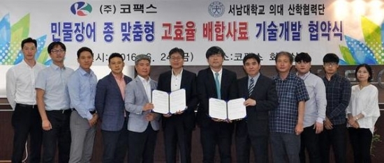 이번 협약으로 (주)코팩스는 이종장어 양식 및 사료기술 개발을 위해 서남대 산학협력단에 5년간 총 10억 원의 연구비를 지원하기로 했다.