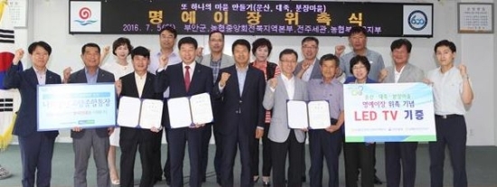 명예이장들은 각 마을회관에 LED TV를 기증하고 참석자들과 함께 농협의 ‘나의살던고향 종합통장’에 가입. 고향지원기금을 조성하는 것으로 첫 일정을 시작했다.