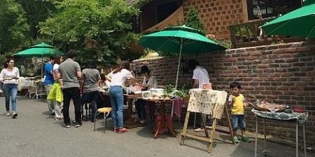 ▲ 파견예술인과 함께 진행한 벼룩시장에서 시민들이 물건을 고르고 있다.
