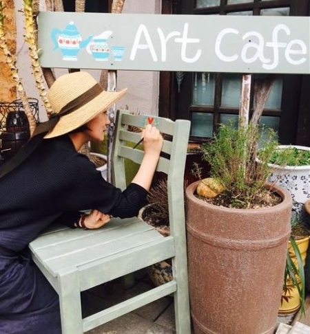 ▲ 파견예술인이 거리디자인을 하고 있다.