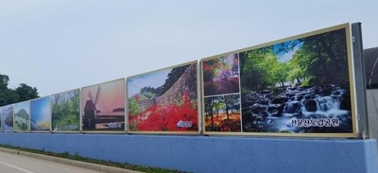 고창군 심원면(면장 김수영)이 관내 곳곳에 설치된 방음벽을 지역 명소를 담은 사진으로 꾸며 눈길을 끌고 있다.