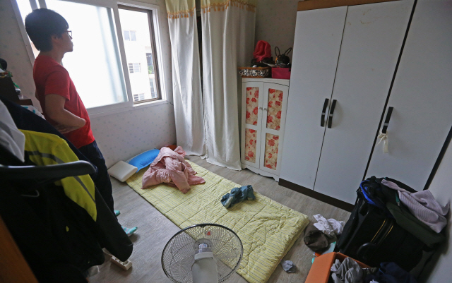 13일 오전 전주시 완산구 서서학동 A아파트 나동. 습하고 더운 날씨에도 에어컨을 틀지 않은 채 강모 씨(28)가 지난밤 마신 캔맥주 3개와 라면 2봉지의 뒷정리를 하느라 분주히 움직이고 있었다.
