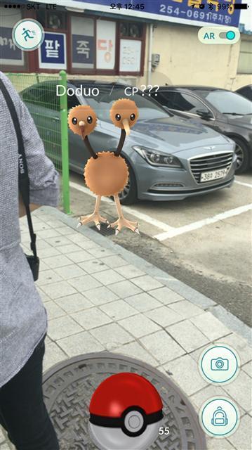 실제 지난 12일 정오 전주시 금암동 전북일보사 인근 음식점. 동료들과 함께 점심을 먹으러 나온 회사원 이모 씨(30)는 스마트폰에서 ‘포켓몬 고’ 게임 앱을 내려받은 뒤 실행, 화면을 이리저리 움직여 음식점 주차장에서 몸통 하나에 머리가 둘 달린 포켓몬 캐릭터 ‘두두’를 발견했다.