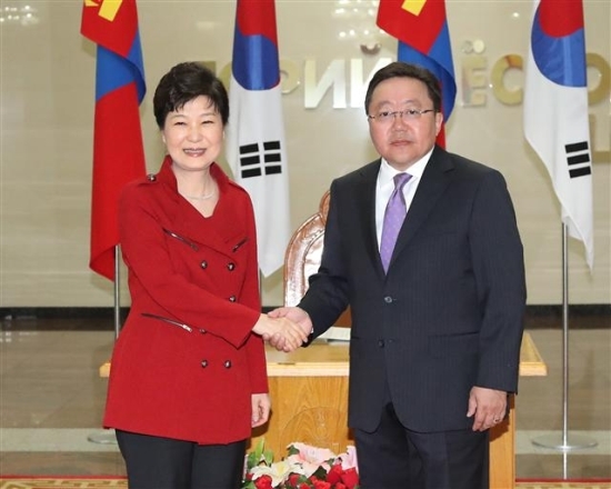 박 대통령은 17일 몽골 정부청사에서 차히야 엘벡도르지 몽골 대통령과 정상회담을 하고 14개 양국 경제협력 프로젝트에서 44억 9000만 달러 규모의 인프라 사업 참여를 추진키로 했다고 청와대가 밝혔다.