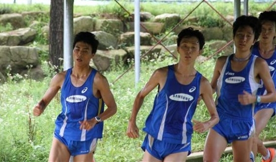 ▲ 지리산 고원지대에서 육상 실업팀 삼성전자가 달리기 연습을 하고 있다.