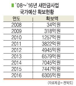 새만금종합개발계획 1단계 국가예산 투입 '찔끔'
