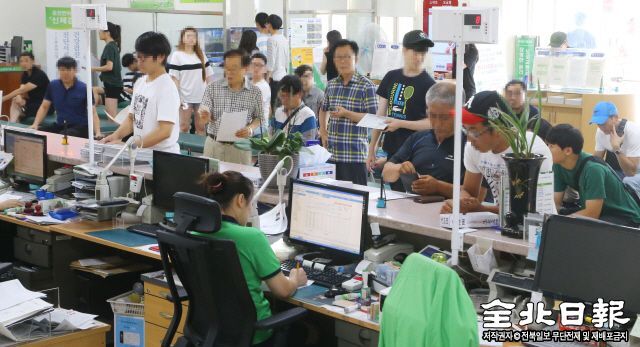 21일 낮 1시, 전북운전면허시험장 1층 민원실은 무더운 날씨에도 불구하고 자동차운전면허 원서 접수와 시험 응시를 위해 찾은 사람들로 북적였다.