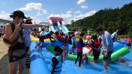 ‘안전한 여울 물놀이’ 테마를 기본으로 진행되는 만큼 다양한 물놀이를 즐기며 더위를 피할 수 있는 게 이 축제의 특징. 강촌마을의 강변에서 신나게 즐기는 ‘대형 물 슬라이딩’ 프로그램과 강물 위에서 즐기는 ‘대형오리 튜브체험’ 등 ‘물벼락(樂)’ 프로그램이 관광객들을 맞이한다. 또 가족이 한 편이 돼 다른 가족들에게 물총을 쏘아대는 ‘가족물총대전’은 시작하자마자 짜릿한 흥분감을 느끼게 될 것이다. 물총에서 발사된 강물을 맞는 순간 무더위를 날리고 신바람이 나게 되는 것은 덤이다.
