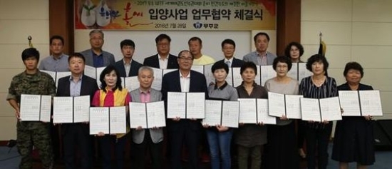 행복홀씨 입양사업은 제20회 무주반딧불축제)와 2017 무주 WTF 세계태권도선수권대회 개최를 앞두고 깨끗한 거리와 마을을 만들기 위해 추진하는 것으로 28일 열린 협약식에서는 사업 개요와 양해각서에 대한 설명에 이어 단체별 확정구간 공유, 양해각서 서명 등이 진행됐다.