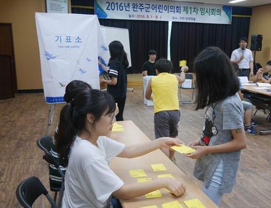 이번 완주군어린이의회 제1차 임시회의에서는 의장단 선출에 이어 상임위원회 구성, 아동권리 교육 순서로 진행됐다.