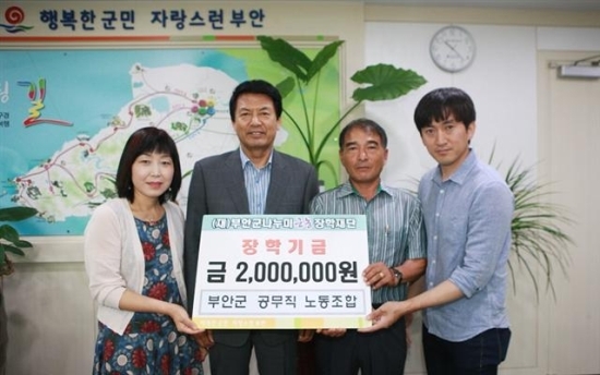 장학재단은 3일 79명으로 구성된 부안군 공무직 노동조합이 조합원 전체 의사를 반영해 회비를 모아 장학금 200만원을 기탁했다고 밝혔다.