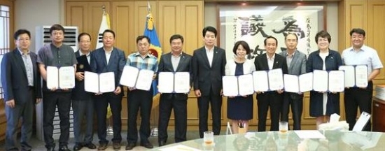▲ 전북도의회 후반기 외교활동운영협의회 위원에 위촉된 시민사회단체 대표, 대학교수 등이 4일 위촉장을 받고 기념촬영 하고 있다. 사진 제공=전북도의회
