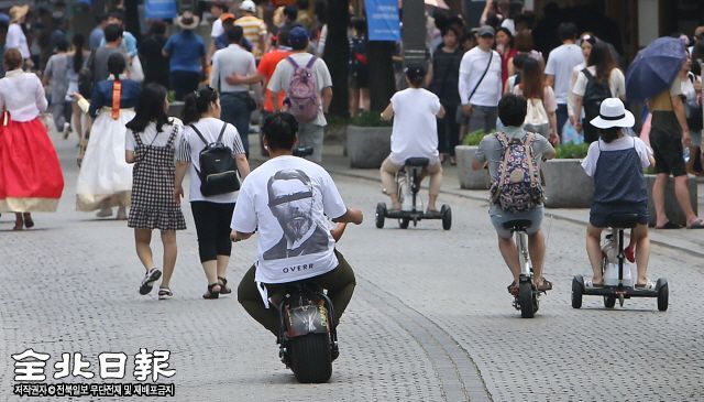 전주시 관계자는 “한옥마을에 거주하는 1300여 명의 거주민들로부터 전동휠 관련 민원이 많이 들어와 경찰에 단속을 요청하는 공문을 10여 차례나 보냈지만 전동휠, 전동킥보드의 경우 명확한 규정이 없어 단속을 못한다는 답변만 들었다”며 “큰 사고가 나기 전에 조속한 대책 마련이 필요하다”고 지적했다.
