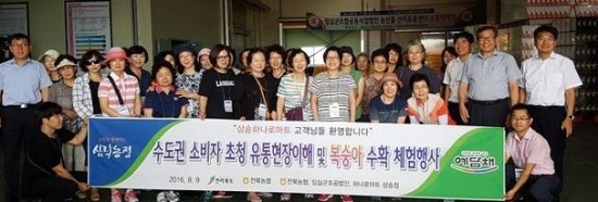 전북농협(본부장 강태호)은 9일 경기도 고양에 있는 농협삼송하나로마트(사장 김봉철) 고객 40여명을 전북으로 초청한 가운데 ‘예담채’복숭아를 직접 수확하는 수도권 소비자 초청 상생 체험행사를 개최했다.