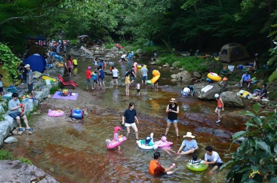 ▲ 순창 강천산 계곡에서 피서객들이 물놀이를 하고 있다.