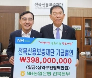 농협은행 전북본부(본부장 최용구)가 도내 중소기업과 소상공인을 지원하기 위해 전북신용보증재단에 10억원의 기금을 출연한데 이어, 17일 추가로 3억9800만원의 기금을 출연했다.