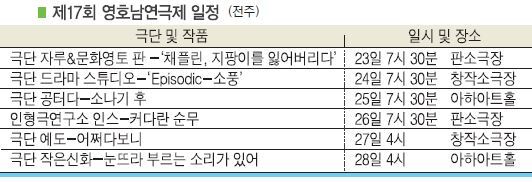17회 영호남연극제 23일부터 / 전주·서울·순천·구미·진주서 / 6개 극단 주요극장 돌며 공연