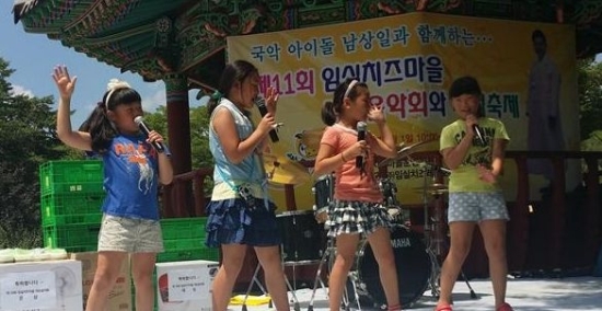 ▲ 지난해 임실군 임실읍 금성리 치즈마을에서 열린 음악회의 노래자랑 참가자들이 율동과 노래를 하고 있다.