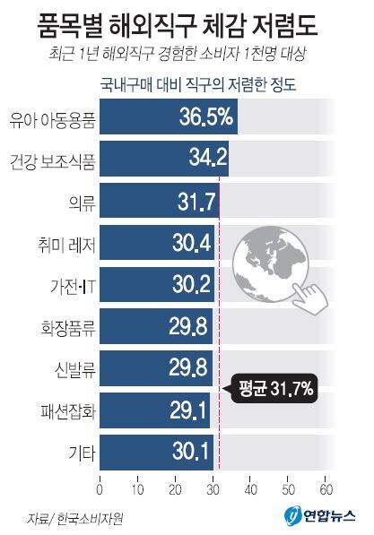 직구를 이용하는 가장 큰 이유는 ‘저렴한 가격(79.5%)’이었는데, 실제로 이들 직구 경험자는 해외 직구가 국내 구매보다 평균 31.7% 싸다고 답했다.