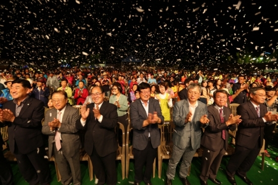 ▲ 지난해 열린 제19회 무주 반딧불축제 행사장에서 참석자들이 축제의 성공을 기원하며 박수를 치고 있다.