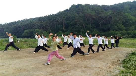 매주 화요일과 목요일 오후 7시 군산월명종합체육관 빈터에서는 중년 이상의 남녀 20여명이 모여 2시간 동안의 기천 수련에 나서고 있다.