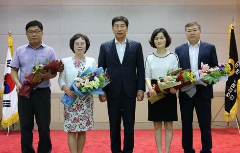 ▲ 6일 농협중앙회가 평가한 상반기‘비이자사업 부문 평가’에서 김제 광활농협을 비롯, 황토현농협, 남부안농협, 삼례농협이 우수상을 수상한 후 기념촬영을 하고 있다. 왼쪽부터 오장길 광활농협 상무, 주미숙 황토현농협 본부장, 강태호 전북농협 본부장, 이미화 삼례농협 과장, 노은우 남부안농협 상무.