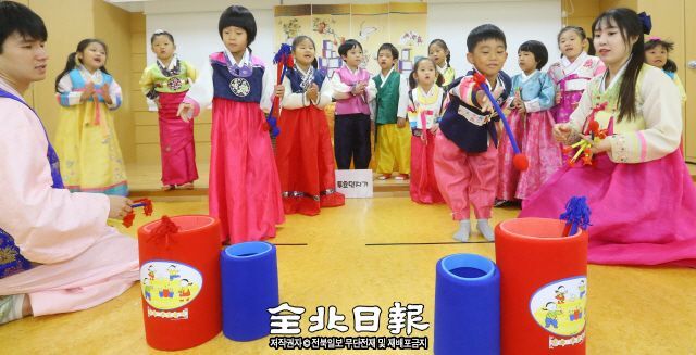 추석 명절을 앞두고 농촌진흥청 도담어린이집에서 한복을 입은 원생들이 투호 등 전통놀이를 하며 웃음을 짓고 있다.