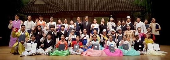 ▲ ‘제24회 정읍 전국청소년국악경연대회’에서 국회의장상 등을 수상한 전국 초·중·고생들이 기념촬영을 하고 있다.