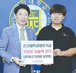 군산시 대학로에 소재한 불고기전문점 시민불고기는 지난 9월 1일 개업, 첫날 매출액 전액을 군산대학교의 발전을 위한 기부금으로 전액 기부한 것이다.