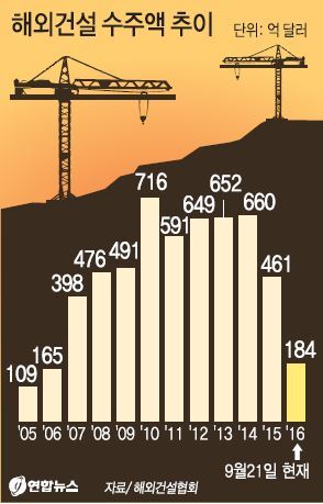 올해 해외건설 수주가 극심한 부진에 빠지면서 비상이 걸렸다. 3분기까지 수주 물량이 200억 달러에도 못 미치면서 연간 수주 물량이 10년 만에 최저치를 기록할 전망이다.