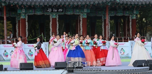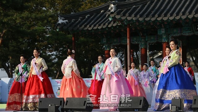 제30회 사선녀선발대회가 열린 지난 24일 임실군 사선대광장 특설무대에서 본선에 오른 참가자들이 아름다움을 뽐내고 있다.
