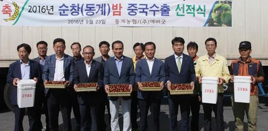 동계농협(조합장 양준섭)이 최근 수출업체 (주)에버굿을 통한 순창동계밤 수출계약을 체결하고 농산물산지유통센터에서 순창밤 중국수출 선적식과 함께 수매에 나서 관심이 모아지고 있다.