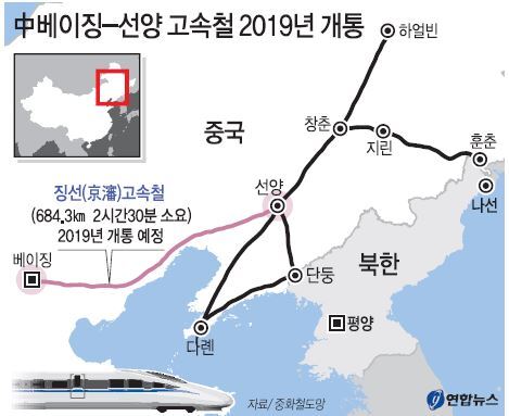 징선 고속철은 총길이 684.3㎞로 허베이(河北)성 청더(承德)~랴오닝(遼寧)성 차오양(朝陽)~푸신(阜新) 등 16개 정차역을 거치면서 베이징과 동북3성(랴오닝·지린·헤이룽장성의 통칭) 중심도시인 선양을 연결한다. 연합뉴스