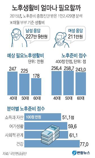국민연금공단은 지난해에 본부와 지사의 국민연금행복노후설계센터를 방문해 노후준비 종합진단을 받은 1만2429명의 데이터를 분석한 결과 이같이 나타났다고 10일 밝혔다.