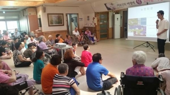 ▲ 전북노인보호전문기관이 지난 8월 11일 전주 반월노인사랑의 집을 찾아 노인인권 교육을 실시하고 있다.
