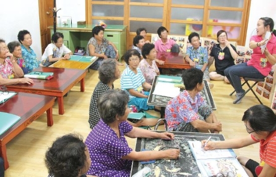 황호숙·김원옥·이영화·박인순씨 한마음 뭉쳐 / 3년째 지역특성화 문화예술교육지원사업 수행 / 마을 찾아 노인 한글 가르치며 미술·게임 등도