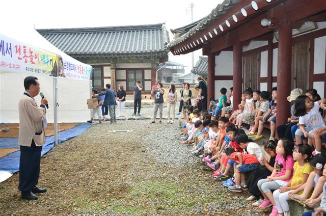 ▲ 순창향교에서 전통놀이 현대화 체험프로그램을 실시해 참여한 어린이들이 강사의 설명을 듣고 있다.