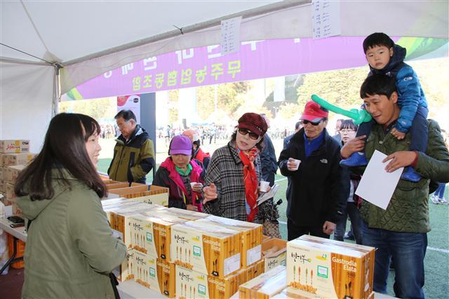 ▲ 지난해 열린 천마축제에서 직거래 판매장을 찾은 관광객이 제품을 둘러보고 있다.
