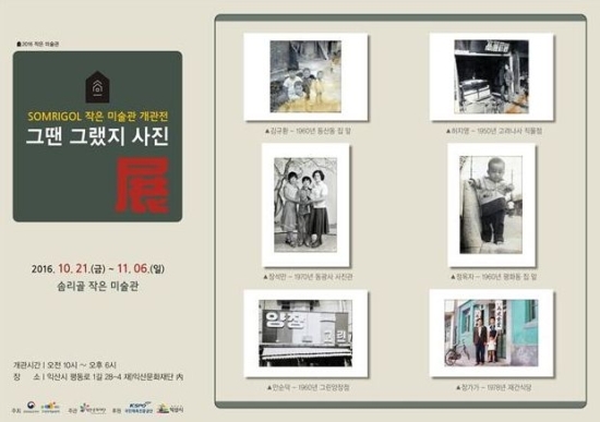 현재 SomRiGol 작은 미술관 개관전으로 ‘그땐 그랬지’ 사진전이 10월 21일부터 11월 6일까지 개최되고 있다. 공모를 통해 선정된 37점이 전시되고 있다. 주민들이 추억의 앨범에서 꺼내 준 옛날 사진을 보며 과거 우리 부모 세대의 젊은 시절을 잠시 엿보는 것도 좋은 추억 여행이 될 것이다. SomRiGol 작은 미술관은 지역 어르신들이 자원봉사자로 돌아가며 도슨트 역할을 자처하며 관람객을 맞고 있다. 관람료는 무료이며, 누구나 관람할 수 있다. 작은 미술관은 개관 이후 하루 150여명의 관람객이 꾸준히 찾고 있다.