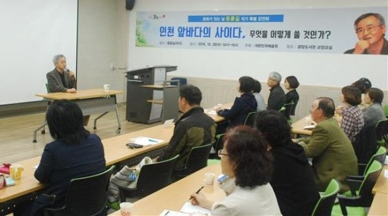 26일 오후 2시 전주금암도서관 교양교실에서 열린 ‘인천 앞바다의 사이다, 무엇을 쓸 것인가’주제의 대한민국예술원 주최 ‘문화가 있는 날 윤흥길 작가 특별강연회’.