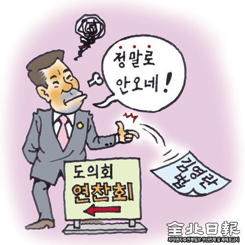 도의회는 의원 연찬회와 관련해 도청 간부 공무원의 관례적인 방문을 삼가라고 주문했다. 그러나 일부 국장이 이 말을 ‘곧이곧대로’ 듣고 오지 않자 일부 도의원이 불편한 심기를 드러냈다. 송하진 전북도지사가 해외 출장으로 부재중인 상황과 연관 지어 기강 해이까지 지적하는 등 구태를 버리지 못했다. 이와 관련 도청 내에서는 ‘어느 장단에 맞춰야 할지 모르겠다’는 하소연까지 나오고 있다.