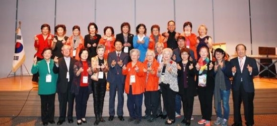 ▲ 파독간호사 50주년을 맞아 지난 27일 부안을 찾은 모국방문팀이 기념촬영을 하고 있다.사진제공=부안군