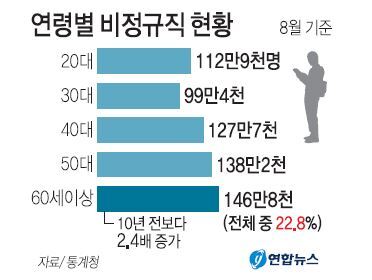반면 같은 기간 20∼40대 비정규직은 모두 감소한 것으로 나타나 대조를 이뤘다.