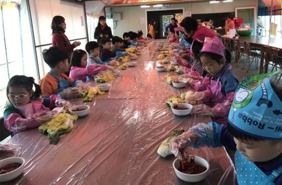 이날 체험에서는 아이들이 소금에 미리 절여 놓은 배추를 이용해 직접 김장을 담그는 체험을 진행했으며 각자 만든 김치는 포장해서 집에 가져가도록 했다.