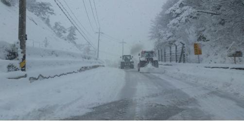 ▲ 지난해 폭설로 도로가 막힌 가운데 중장비 차량들이 제설작업을 벌이고 있다.