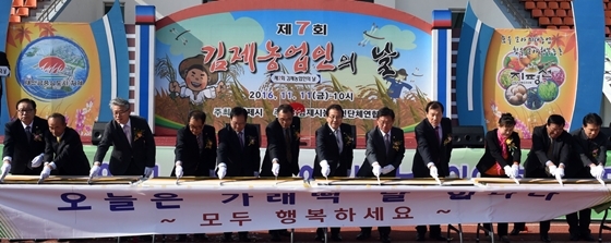 제7회 김제시 농업인의 날 행사가 지난 11일 시민운동장에서 이건식 시장을 비롯 나병문 김제시의회 의장, 도·시의원, 유관기관 단체장, 농업인 등 2000여명이 참석한 가운데 성황리 열렸다.