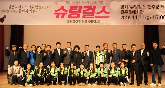 신봉준 완주군 행정복지국장은 “슈팅걸스처럼 자신의 꿈을 좇는 학생들에게 큰 희망을 주고 또한 완주군이 영화촬영 명소로 자리매김하길 바란다”고 전했다.