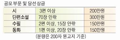 - 응모작품은 미발표 창작품이어야 하며 다른 신문·잡지에 중복 투고한 작품은 입상 결정 후에도 취소됩니다.